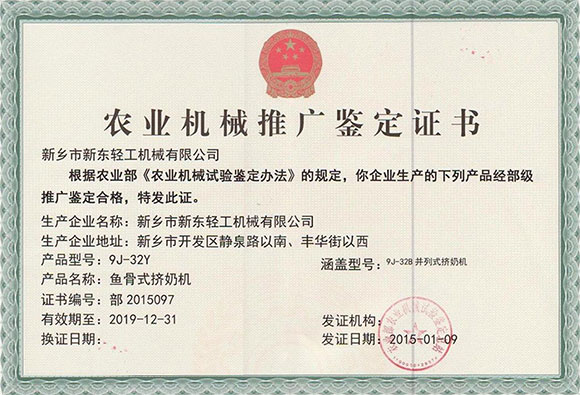 我公司生產的牛奶運輸罐車、擠奶機、直冷式冷藏罐、牛奶運輸罐、鮮奶速冷系統、室內外大型貯罐、全混合日糧飼料攪拌機等部分產品,經農業部農業機械試驗鑒定總站鑒定合格,連續多年列入農業機械購置補貼產品目錄,凡購買我公司農機推廣產品均可享受國家農機購置補貼。
