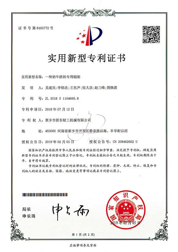新東機械部分專利證書
